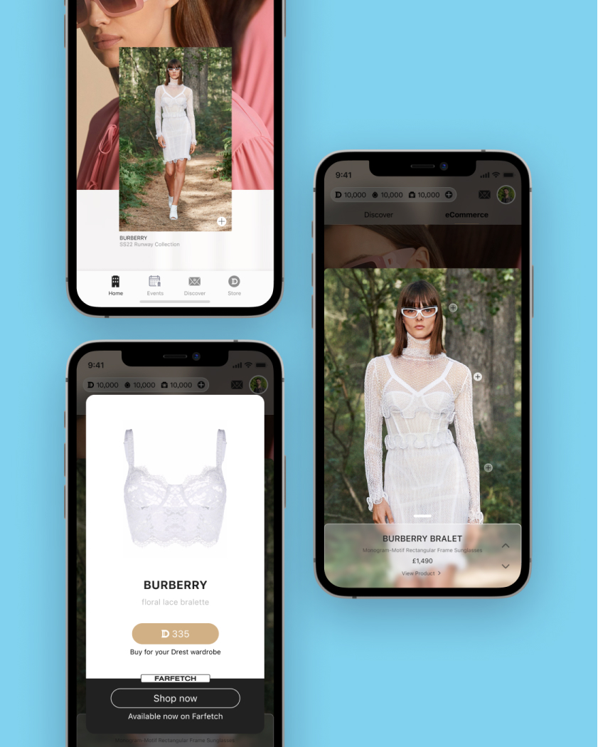 DREST Avenue was designed as a bridge between digital play and real-world commerce, allowing players to purchase the items they styled in-game via Farfetch. Designing this experience required balancing the needs of the player, DREST, and Farfetch — with the player always remaining the primary focus.